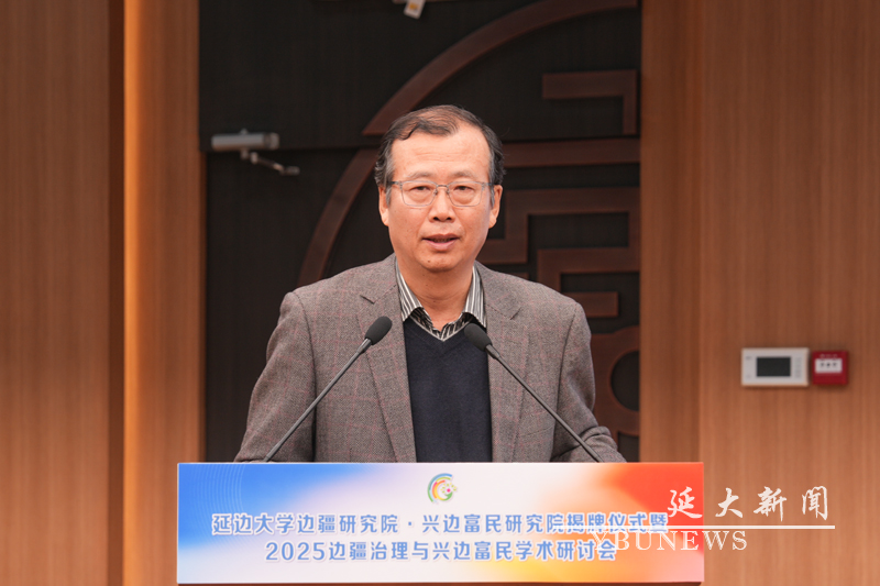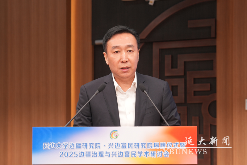 (通讯员 高子愉)4月12日上午,金沙威尼斯欢乐娱人城边疆研究院·兴边富民研究院揭牌仪式暨2025边疆治理与兴边富民学术研讨会在我校举办。省委常委、州委书记胡家福,中国社会科学院学部委员、中国历史研究院副院长李国强出席开幕式。金沙威尼斯欢乐娱人城党委书记、学校边疆研究院·兴边富民研究院院长杜锐致欢迎辞。中国社会科学院中国边疆研究所党委书记刘晖春,吉林省教育厅副厅长、省委教育工委副书记刘学军,吉林省民族事务委员会主任、省委统战部副部长冯庆忠先后致辞。