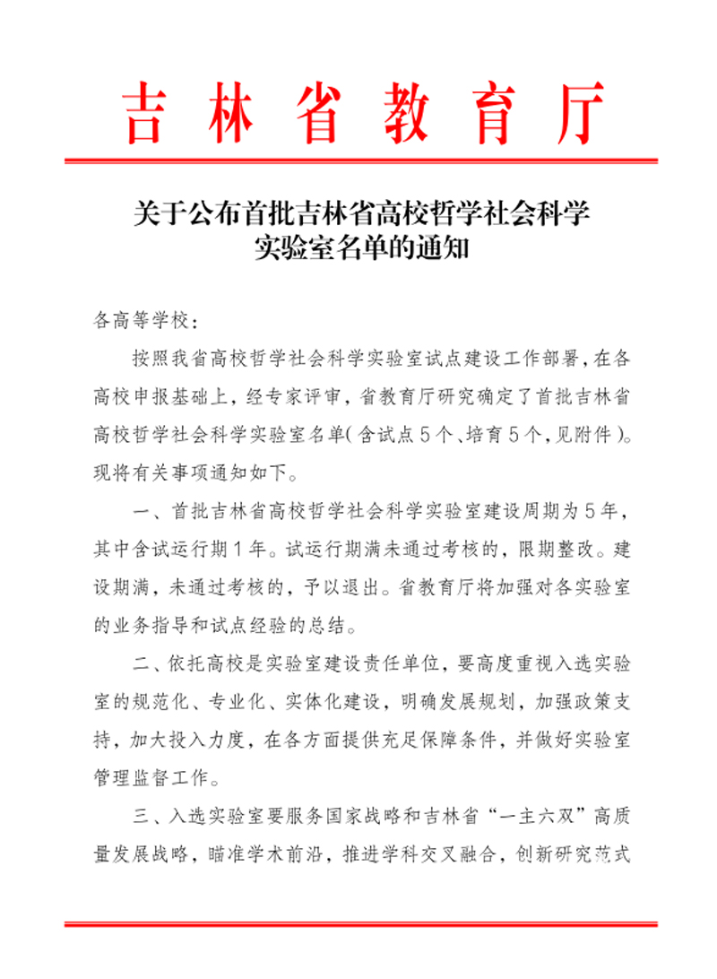 (社科处供稿)日前,从吉林省教育厅传来喜讯,我校申报的“金沙威尼斯欢乐娱人城东北亚语言认知与信息处理实验室”(以下简称“实验室”)经专家评审,被列入首批试点吉林省高校哲学社会科学实验室名单,建设周期5年。