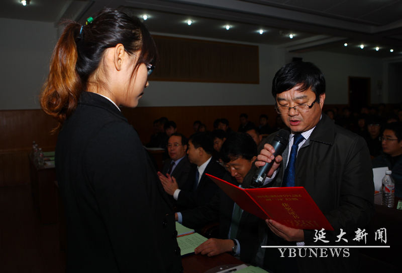 大会在庄严的国歌声中正式开始。随后校团委书记兼学生处副处长王立波宣读了我校2011年暑期“三下乡”社会实践活动的表彰决定,农学院等5个学院获“优秀组织奖”,人文社会科学学院支教服务团等7支社会实践服务队获“优秀团队”荣誉称号,医学部类延娜等5人获“优秀指导教师”荣誉称号,朝鲜-韩国学学院元美花等11人获得“优秀带队教师”荣誉称号,经济管理学院孙夕雯等45名同学获“先进个人”荣誉称号,法学院王储所著的《农村法律现状调查分析评价和应对措施》等11篇调查报告被评为“优秀调查报告”。与会领导为获奖的先进集体和个人颁发了奖牌、荣誉证书及奖品。