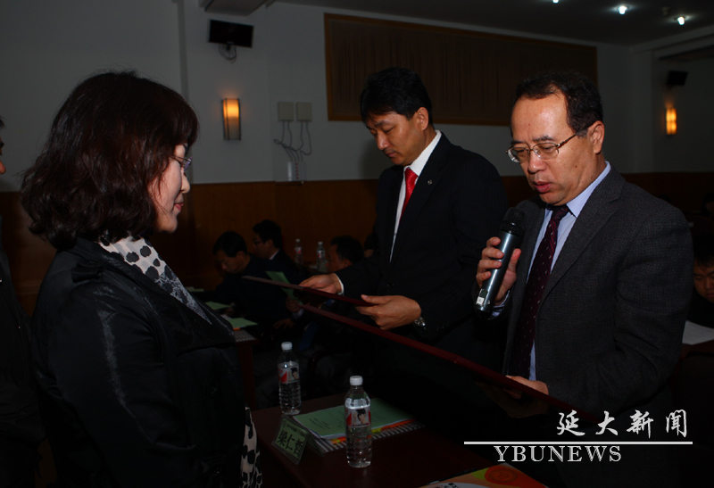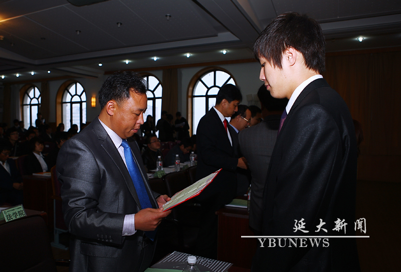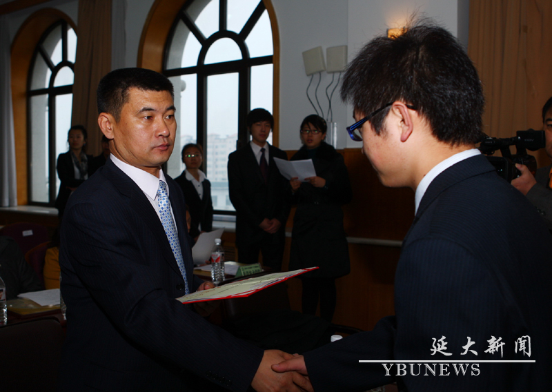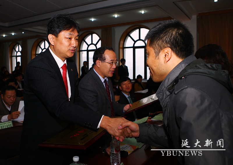校学生处处长梁仁哲为获奖者颁奖