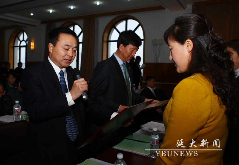 校党委副书记兼副校长金雄为获奖者颁奖