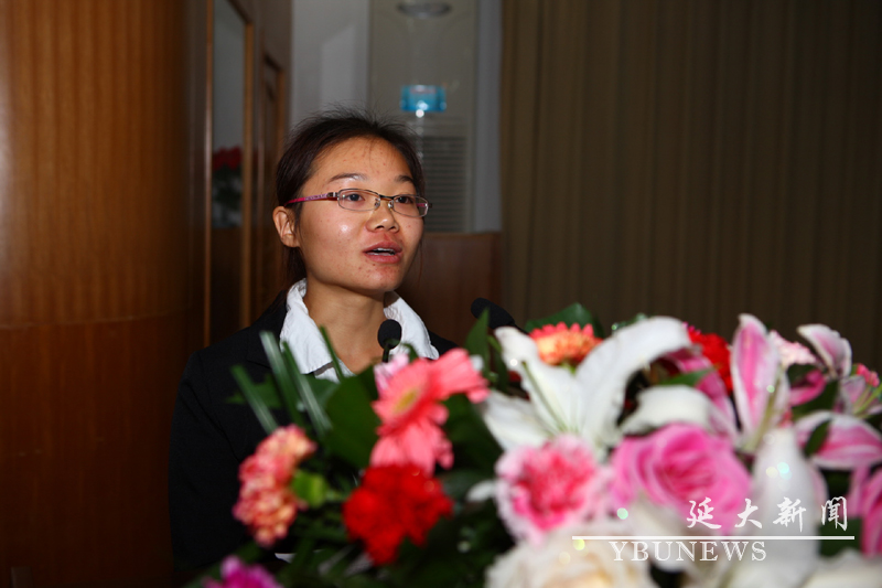 经济管理学院呼延文娟作为先进集体获奖单位代表发言,法学院2009级郭盼盼同学作为先进个人获奖代表发言。