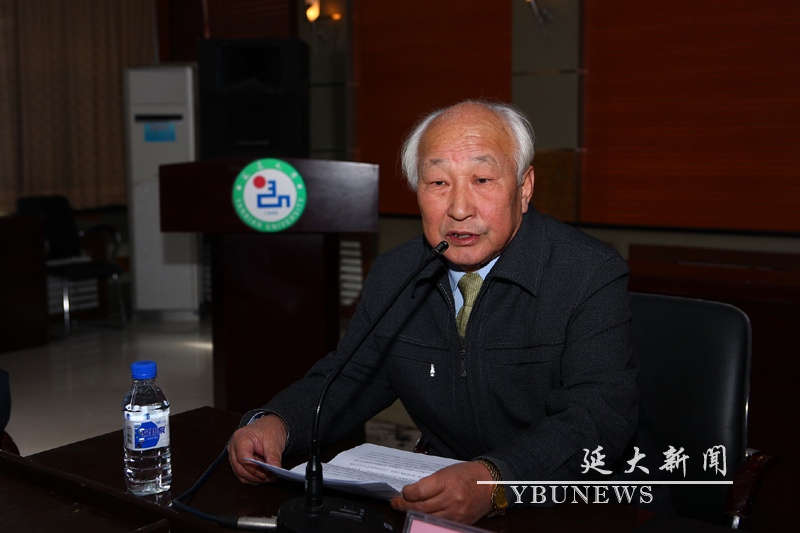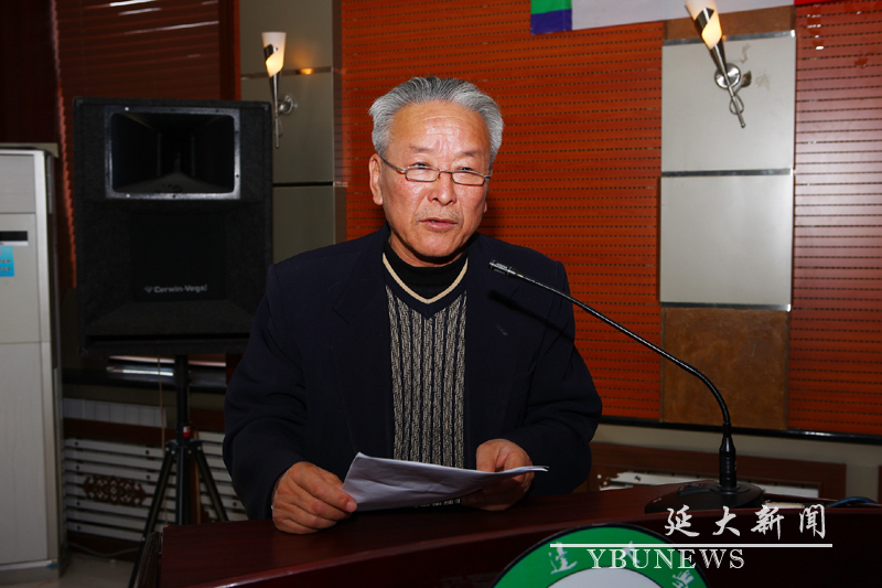 金昌南在会上发言。金昌南同志在我校学习、工作了58年,他对学校有着非常深厚的感情。他饱含深情地说,我们的老同志,满怀着对党的事业的真切关注和对大学生成长的热情关爱,积极投身关心下一代的事业中。金昌南同志在言中,结合自己18年间从事关工委工作的经验,从实践与探索、创新与提高两方面回顾了我校关委工作历程,以及谋求特色与发展之路,发挥延边地缘优势、革命传统优势入“五老”队伍优势,突出我校特色,在对学生进行社会主义核心价值体系教育过程中,坚持民族团结教育,促进学生健康成长,全面发展。