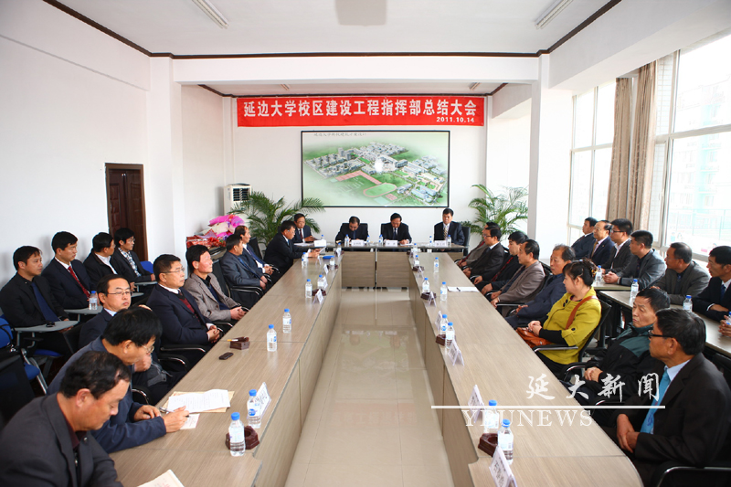 (张顺兴)10月14日下午,我校校区建设工程指挥部总结大会在工程指挥部会议室召开。校党委书记李勇,校长金柄珉,副校长朴永浩、郭文君出席会议,校区建设工程指挥部各部门负责人、外聘专家和工程指挥部全体人员参加会议。校区建设工程指挥部综合办公室主任尹根席主持会议。