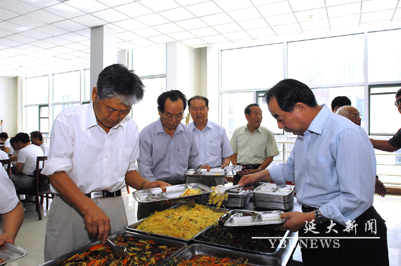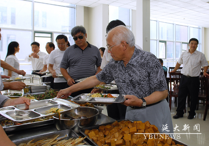 原校长朴文一与校友们在食堂会餐