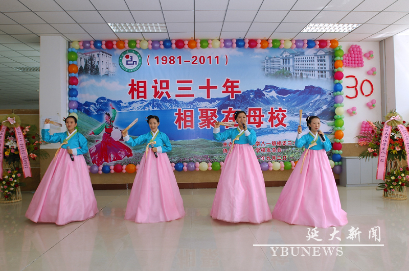 为重温30年前的大学生活,感受今昔变化,应组委会要求,校友总会协助安排全体校友在新校区一食堂三楼会餐。原校长朴文一致祝酒辞。我校学生为校友们献上了精彩的文艺演出。返校的81级校友们在母校度过了愉快、温馨的一天。