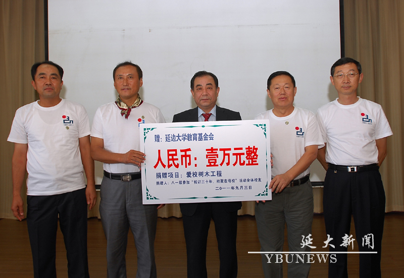 随后,校友代表向学校捐赠壹万元基金,以支持学校的爱校树木工程。学校将在新校区科技楼北侧种植捐赠额度的树木,以作永久纪念。