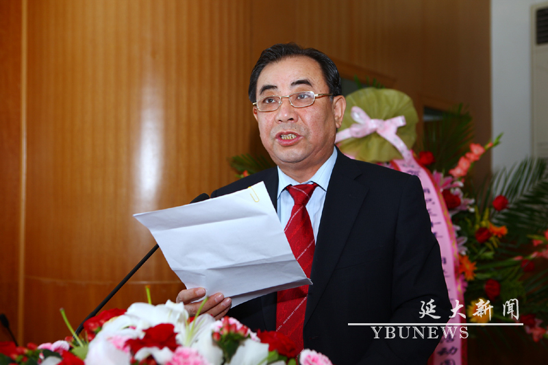 校长金柄珉在会上讲话