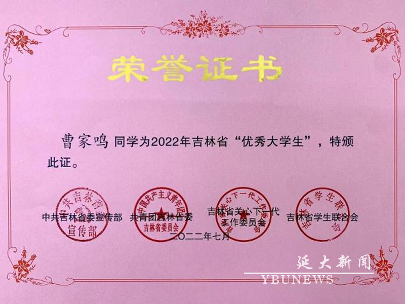 (校团委供稿)近日,由团省委和省学联主办的2022年度吉林省“优秀大学生”寻访活动结果公示,我校农学院农业资源与环境专业颜廷春、经济管理学院世界经济专业厉淼、农学院园林专业曹家鸣等3名学子荣获2022年吉林省“优秀大学生”荣誉称号。
