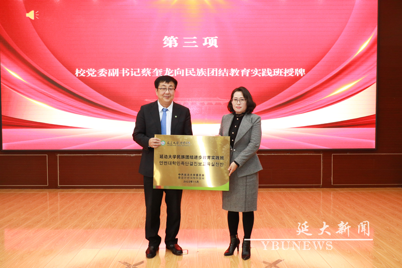 (统战部供稿)11月11日下午,我校在珲春校区知新楼报告厅举办民族团结进步教育实践班授牌仪式,校党委副书记蔡奎龙出席活动。