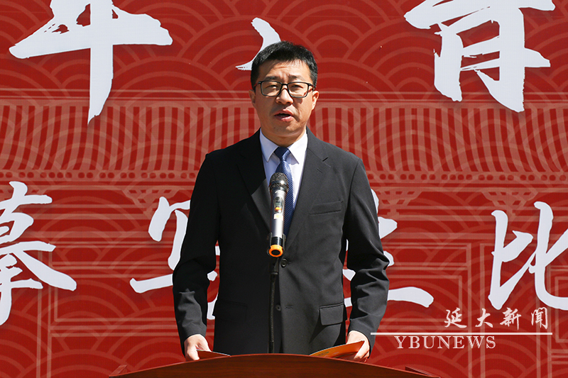 校党委常委、宣传部·教师工作部部长王洪国致辞。他表示,全校广大师生要以此次比赛为契机,不断推动学校美育思政取得新成效;做到知史爱党、知史爱国、知史爱校,进一步坚定理想信念、提升思想境界;坚持学思用贯通、知信行统一,把学习的成效转化为推动学校内涵式高质量发展的强大动力,为把我校建设成为国内一流、国际知名、特色鲜明的高水平大学的目标奋勇前行。
