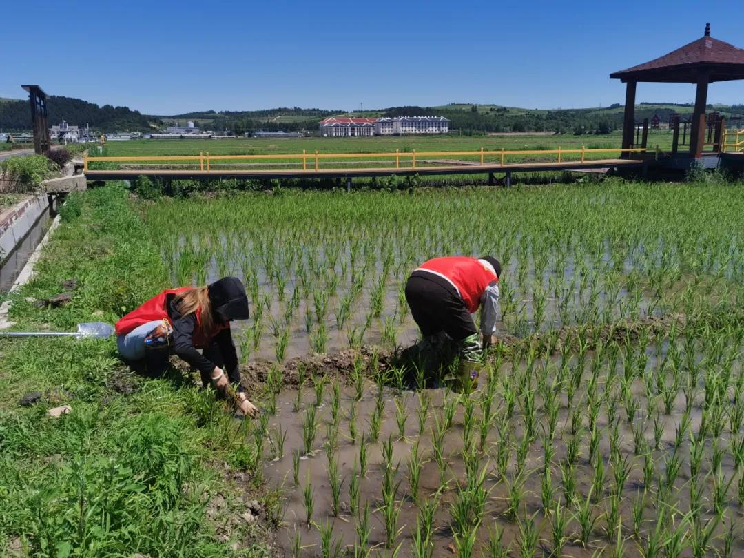 在靠近路边的一块稻田里,四位农民打扮的身影正躬身“劳作”。“这是老傅和他的学生,我的‘技术顾问团’。”和龙市东城镇淳哲有机大米农场有限公司总经理金君介绍说。