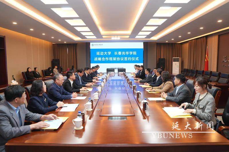 (通讯员高子愉)9月20日下午,我校与长春光华学院在党政办公楼3楼会议室举行战略合作协议签约仪式。校党委副书记、校长蔡红星,副校长张玉红、王洪福;长春光华学院董事长康启鹏,校长李晓光,副校长陈铁、张勇出席仪式。仪式由张玉红主持。
