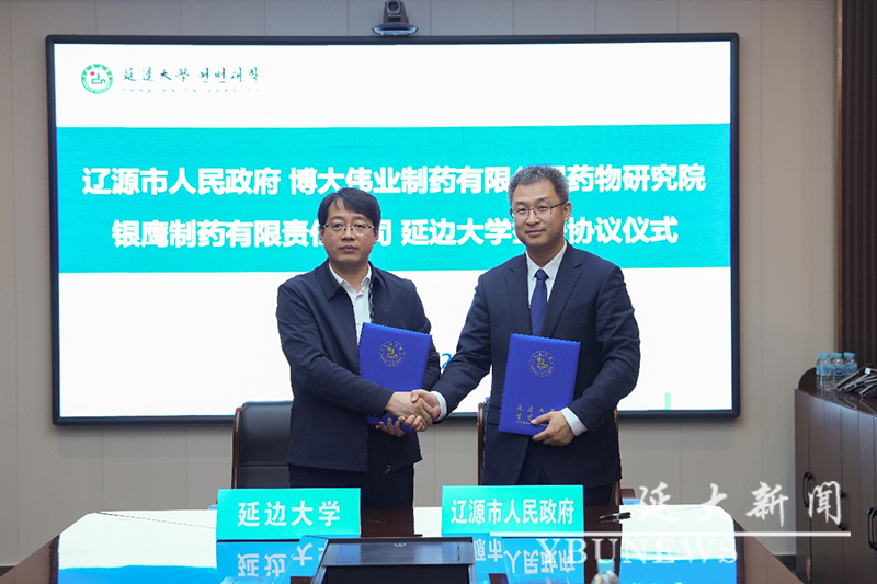 王洪福、肖飞代表双方签署了合作协议;药学院与辽源市博大伟业制药有限公司、辽源市银鹰制药有限责任公司分别签署了院企合作协议。