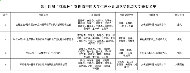 (校团委供稿)11月2日,由共青团中央、教育部、人力资源社会保障部、中国科协、全国学联和陕西省人民政府共同主办,西安交通大学、共青团陕西省委承办的第十四届“挑战杯”秦创原中国大学生创业计划竞赛终审决赛在西安交通大学圆满落幕。我校作品“吉疆起航--让优质农产品跨越千山万水的文创赋能领航者”荣获第十四届“挑战杯”秦创原中国大学生创业计划竞赛主赛道金奖,创造了我校在“挑战杯”系列赛事中金奖“零”的突破!