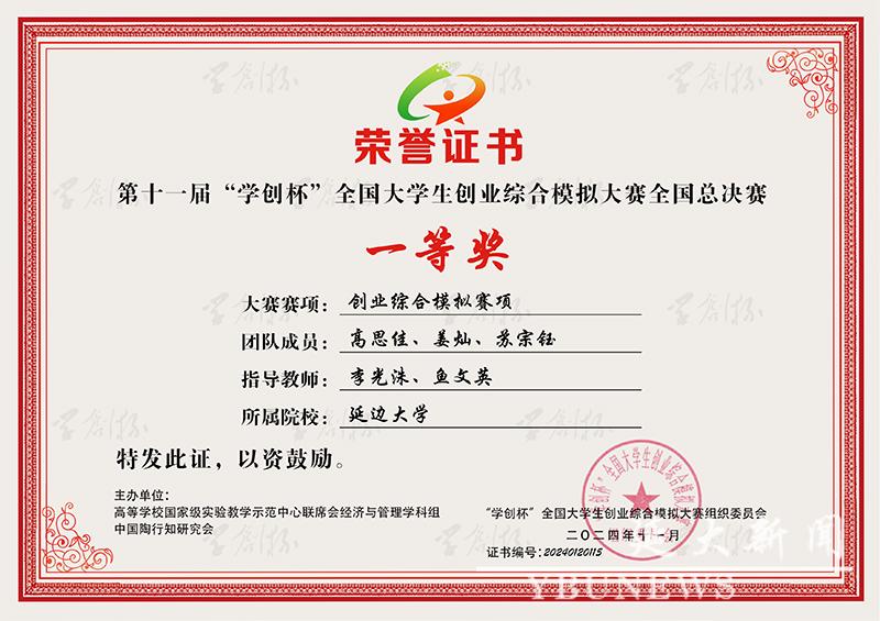 (教务处供稿)日前,由高等学校国家级实验教学示范中心联席会经管学科组和中国陶行知研究会联合主办的第十一届“学创杯”全国大学生创业综合模拟大赛总决赛在徐州医科大学落幕。我校参赛的两支队伍在总决赛中发挥出色,均获全国总决赛一等奖。