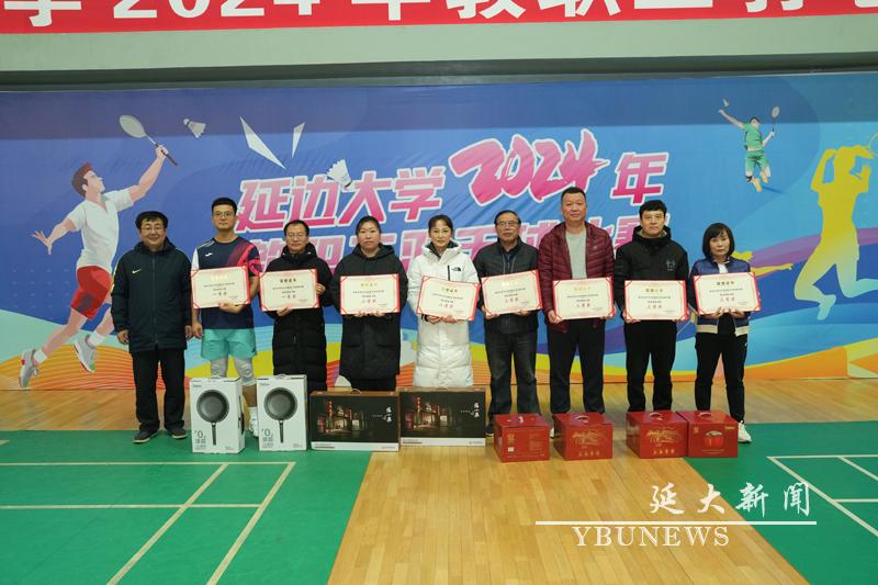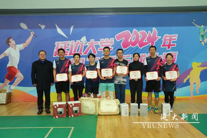 全校共有21支队伍参赛,分为男子双打、女子双打、混合双打和混合团体多个项目,赛程紧凑、对决激烈。最终在混合团体赛A组中体育学院荣获一等奖,外国语学院荣获二等奖,机关一队、后勤保障处荣获三等奖;在混合团体赛B组中理学院—地理与海洋科学学院联队荣获一等奖,经济管理学院荣获二等奖,马克思主义学院—人文社会科学学院联队、医学院荣获三等奖;在男子双打比赛中体育学院荣获一等奖,机关荣获二等奖,金沙威尼斯欢乐娱人城附属医院(延边医院)、外国语学院荣获三等奖;在女子双打比赛中后勤保障处荣获一、二等奖,机关、工学院荣获三等奖;在混合双打比赛中体育学院荣获一等奖、二等奖,外国语学院、体育学院荣获三等奖;继续教育学院、美术学院、护理学院、机关二队荣获优秀组织奖。