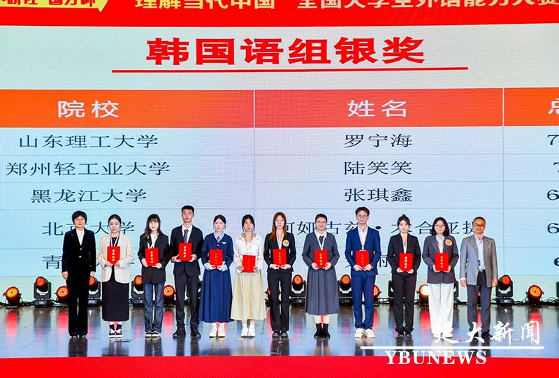 在“外研社·国才杯”“理解当代中国”全国大学生外语能力大赛全国总决赛中,朝鲜语专业1名同学和日语专业1名同学分别获得韩国语组、日语组银奖各1项。在“外研社·国才杯”“理解当代中国”全国大学生英语能力系列大赛吉林赛区中,朝鲜语专业、英语专业共3名同学分别获得短视频赛项、综合能力赛项和笔译赛项、演讲赛项和口译赛项银奖各1项。