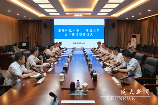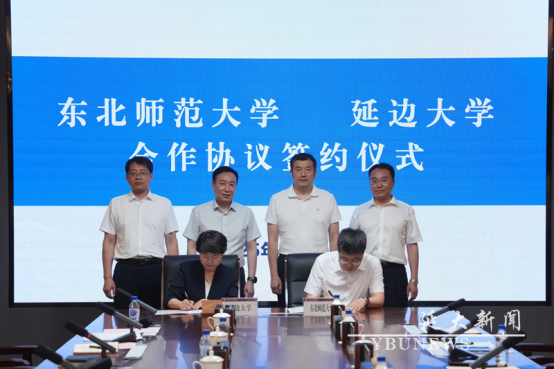 (通讯员高子愉)6月30日下午,我校与东北师范大学在党政办公楼3楼会议室举行合作协议签约仪式。东北师范大学校长徐海阳,党委常委、副校长严蔚刚;我校党委书记杜锐,副校长王洪福、朱卫红出席仪式。仪式由王洪福主持。