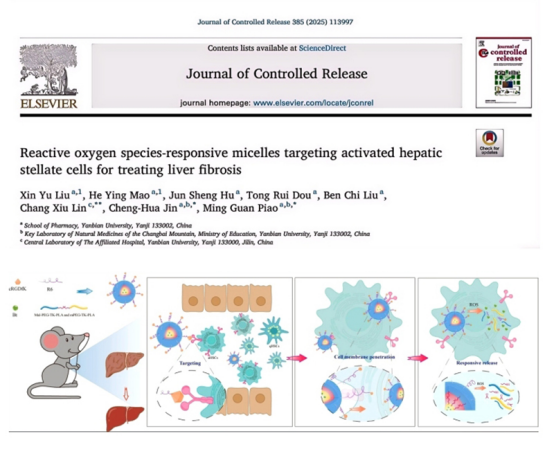 (药学院供稿)近日,药学院药物制剂教学科研团队朴明贯教授课题组在Top期刊《Journal of Controlled Release》上发表了题为“Reactive oxygen species-responsive micelles targeting activated hepatic stellate cells for treating liver fibrosis”的论文。该研究通过设计新型靶向穿透肽修饰的活性氧响应胶束,实现了活化肝星状细胞的高效靶向递药,为肝纤维化治疗提供了创新性解决方案。该研究由金沙威尼斯欢乐娱人城独立完成,药学院教授朴明贯、副教授金成华和附属医院副研究员林昌岫为共同通讯作者;博士生刘欣钰为第一作者,硕士生毛鹤颖为共同第一作者。全文链接:https://doi.org/10.1016/j.jconrel.2025.113997